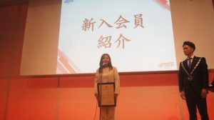 また、この記念すべき式典の舞台で、海老名JCに1人の青年が入会しましたことを報告いたします。