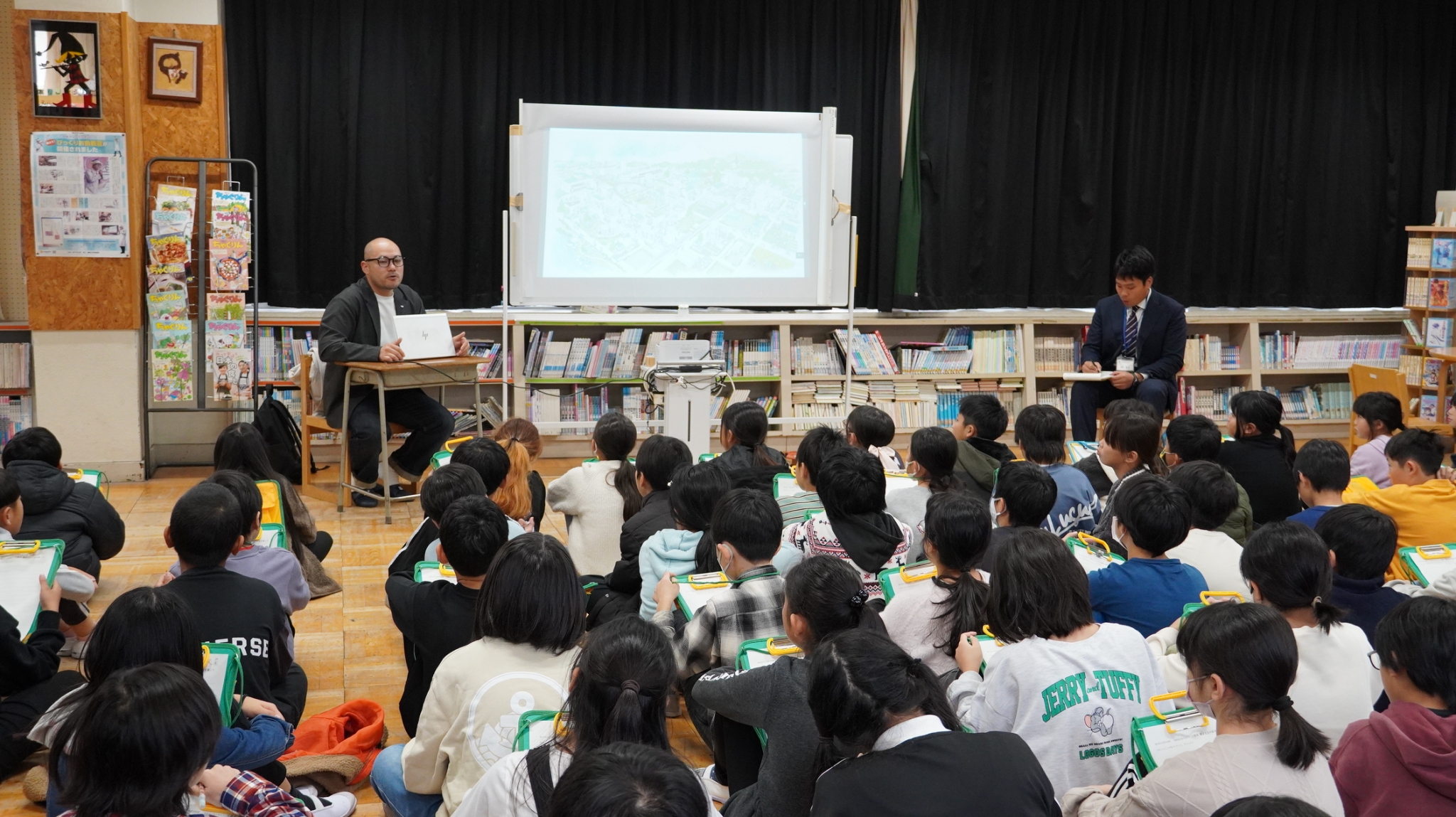 今回の授業では、「まちづくりって何だろう?」という問いに対し、理事長が子どもたちの目線に寄り添いながら、自身の言葉で丁寧に伝えてくれました。
